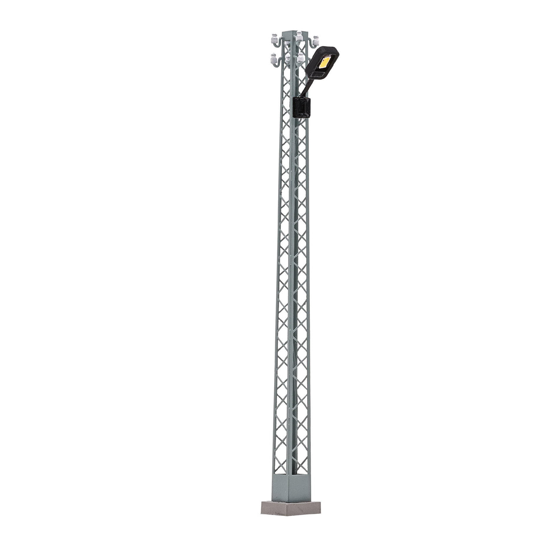 Der Gittermast kann mit weiteren Leuchtkörpern aus dem Set H0 TT 4152 bestückt werden. Fertigmodell.
