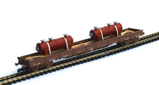 auf Transportgestell gelagert und mit Spannbändern gesichert, passend für alle gängigen 4-achsigen Flach-, Niederbord- und Rungenwagen; Länge: ca. 150 mm
